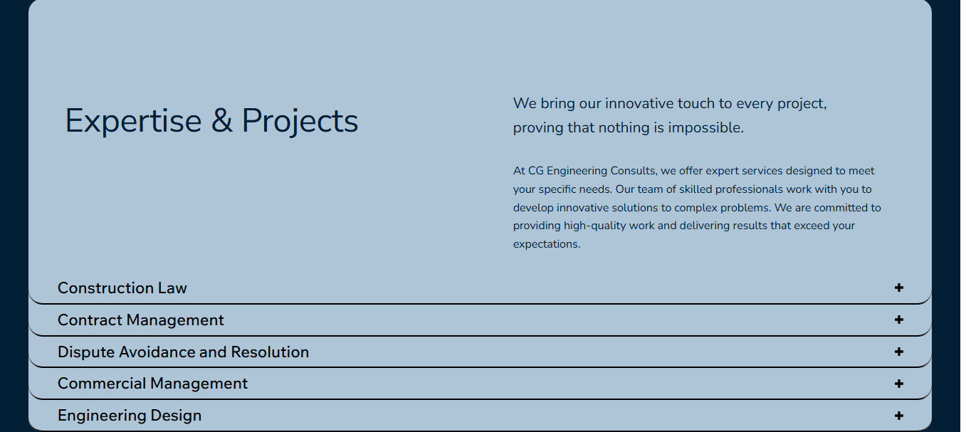 This project involved the complete design and development of a bespoke website for a Construction industry Consultancy company. The goal was to create a digital experience that reflects the studio’s commitment to craftsmanship, quality, and personalized service, while also offering a seamless user experience.